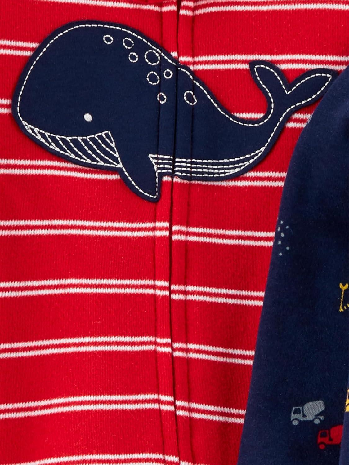 Simple Joys by Carter’s baby-boys 2-way Zip Thermal Footed Sleep and Play, Pack of 2(Navy Trucks/Red Whale)