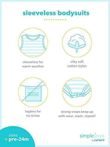 Simplify dressing your baby boy with this 6-pack of short-sleeve bodysuits from Simple Joys by Carter's. Each bodysuit features expandable shoulders that make it easy to slip over your baby’s head, while the strong, nickel-free snaps ensure quick and hassle-free diaper changes. Made from 100% soft and breathable cotton, these bodysuits are gentle on your baby's skin and perfect for everyday wear. The tagless design eliminates irritation, keeping your baby comfortable all day long. With OEKO-TEX Standard 100 certification, you can trust that these bodysuits are safe and free from harmful substances. Available in a convenient 6-pack, these bodysuits provide exceptional value and are designed to mix and match easily with any outfit. Simple Joys by Carter's delivers high-quality, stylish clothing at affordable prices, making this 6-pack a smart choice for parents looking for both quality and value.