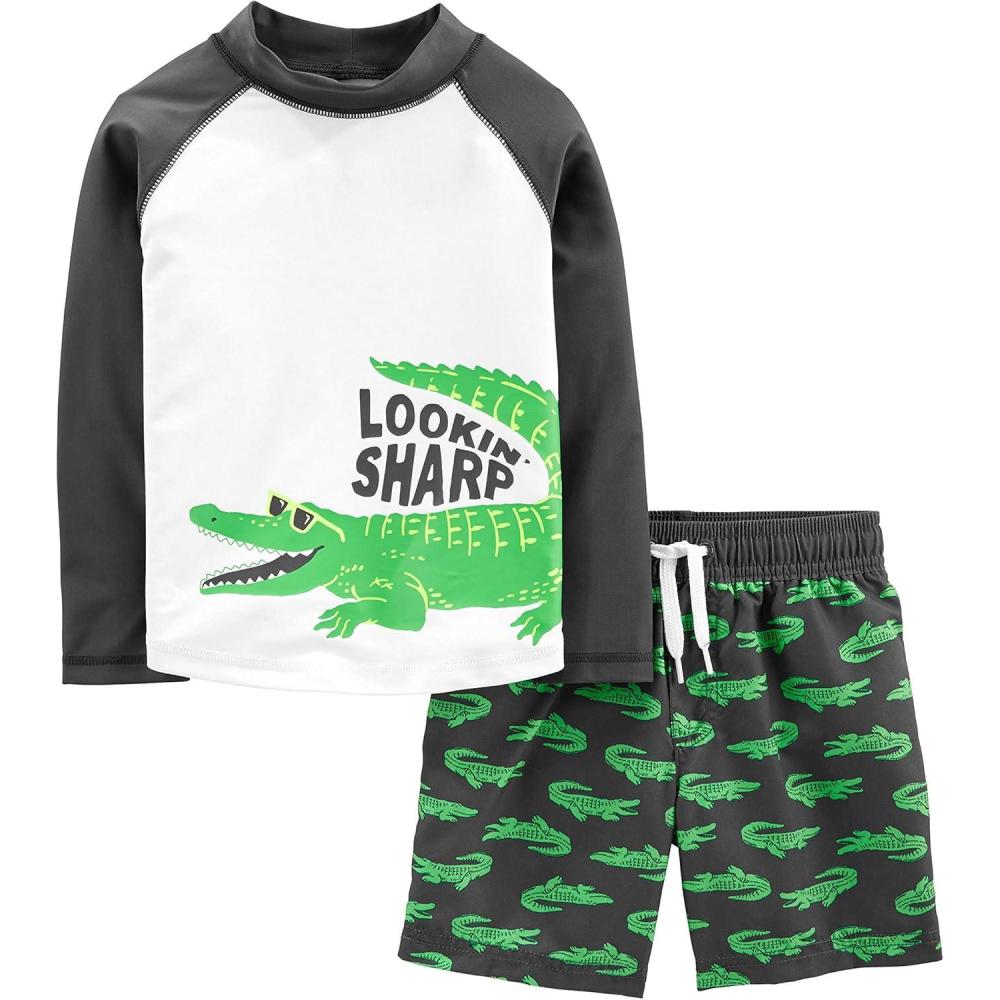 Simple Joys by Carter’s Baby-Boys Swimsuit Trunk and Rashguard Set(Black Crocodile Print)