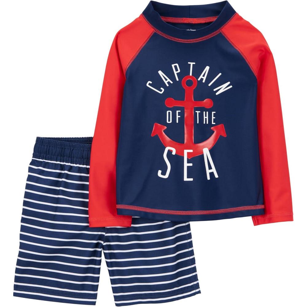 Simple Joys by Carter’s Baby-Boys Swimsuit Trunk and Rashguard Set(Navy Red Anchor/White Stripe)