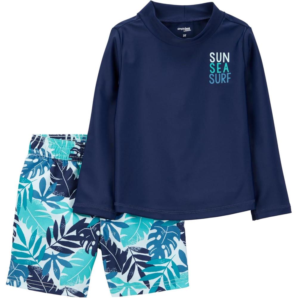 Simple Joys by Carter’s Baby-Boys Swimsuit Trunk and Rashguard Set(Navy White Tropical)