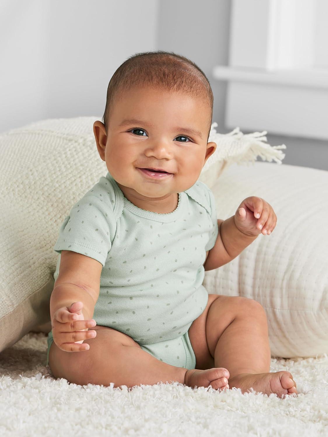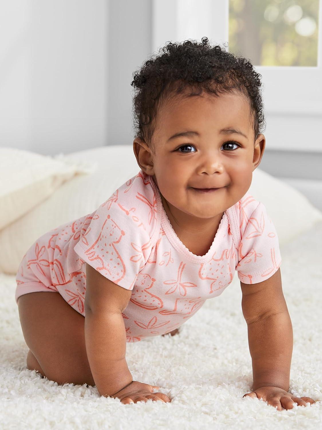 Simplify dressing your baby girl with this 6-pack of short-sleeve bodysuits from Simple Joys by Carter's. Each bodysuit features expandable shoulders that make it easy to slip over your baby’s head, while the strong, nickel-free snaps ensure quick and hassle-free diaper changes. Made from soft fabric, these bodysuits are gentle on your baby's skin and perfect for everyday wear. The tagless design eliminates irritation, keeping your baby comfortable all day long. With OEKO-TEX Standard 100 certification, you can trust that these bodysuits are safe and free from harmful substances. Available in a convenient 6-pack, these bodysuits provide exceptional value and are designed to mix and match easily with any outfit. Simple Joys by Carter's delivers high-quality, stylish clothing at affordable prices, making this 6-pack a smart choice for parents looking for both quality and value.