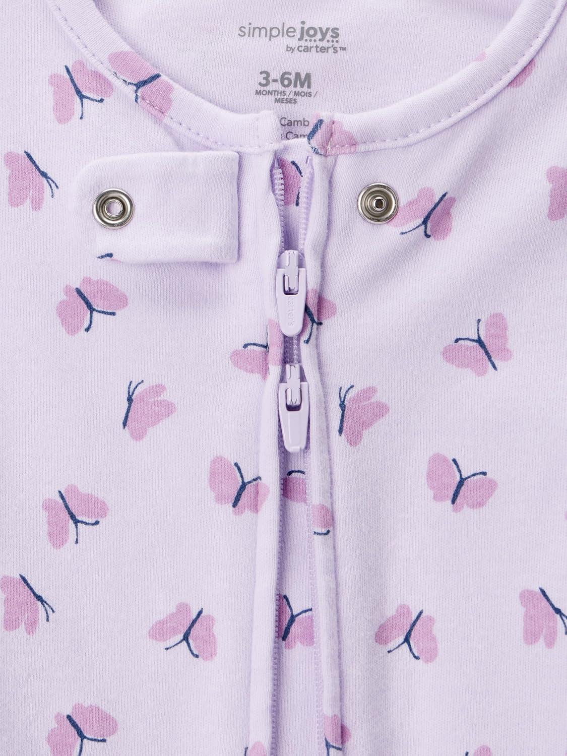 Simple Joys by Carter’s Baby Girls’ Cotton Footed Sleep and Play, Pack of 2(Purple Floral Butterly)