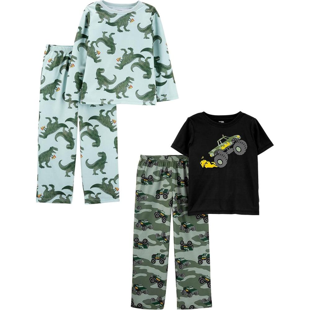 The Simple Joys by Carter’s 2-Pack 4-Piece Pajama Set is a versatile and comfortable sleepwear choice for your little one, featuring two different pajama combinations in one set. Each set includes one short-sleeve, shorts-style pajama and one short-sleeve, pants-style pajama, offering both warmth and comfort for different seasons. Alternatively, the set may include a long-sleeve, pants-style pajama, ensuring cozy coverage during cooler nights. Designed with your child’s comfort in mind, these pajamas are made from soft fabrics that are gentle on the skin, allowing for a peaceful night’s sleep. The fun prints and vibrant patterns, including playful animals, cheerful geometric shapes, and exciting designs, will make bedtime something your child looks forward to.