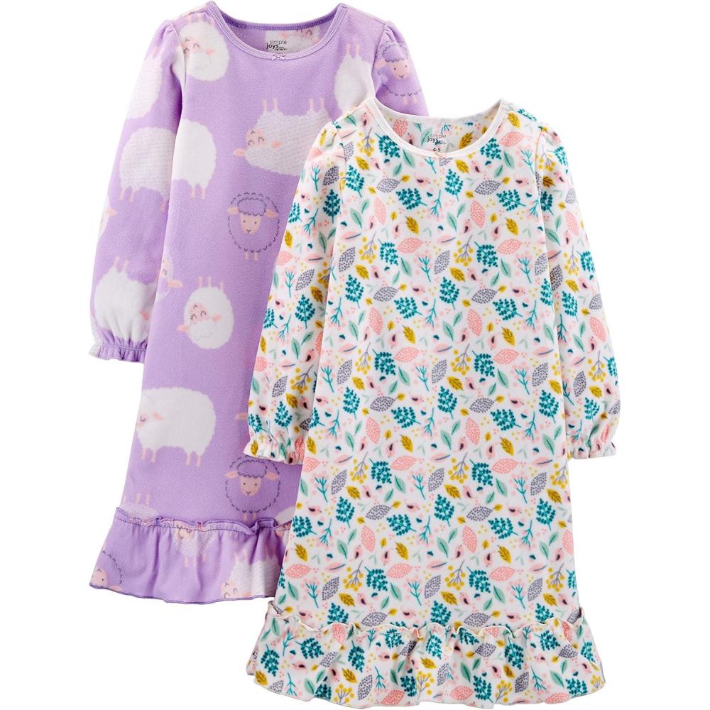 Simple Joys by Carter’s girls 2-pack Fleece Nightgowns(Lilac Sheep/White Floral)