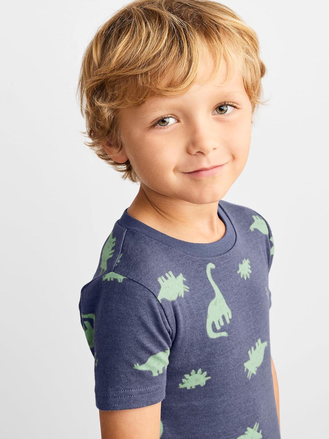 Simple Joys by Carter’s girls 6-piece Snug Fit Cotton Pajama Set(Green Stripe/Grey Heather/Indigo Wash Dinosaur)