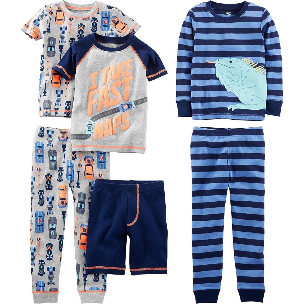 Simple Joys by Carter’s girls 6-piece Snug Fit Cotton Pajama Set(Grey Cars/Navy Stripe/Text Print)