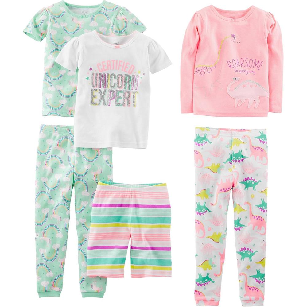 Simple Joys by Carter’s girls 6-piece Snug Fit Cotton Pajama Set(Mint Green Rainbow/Pink/White Dinosaur/Stripe/Unicorn)