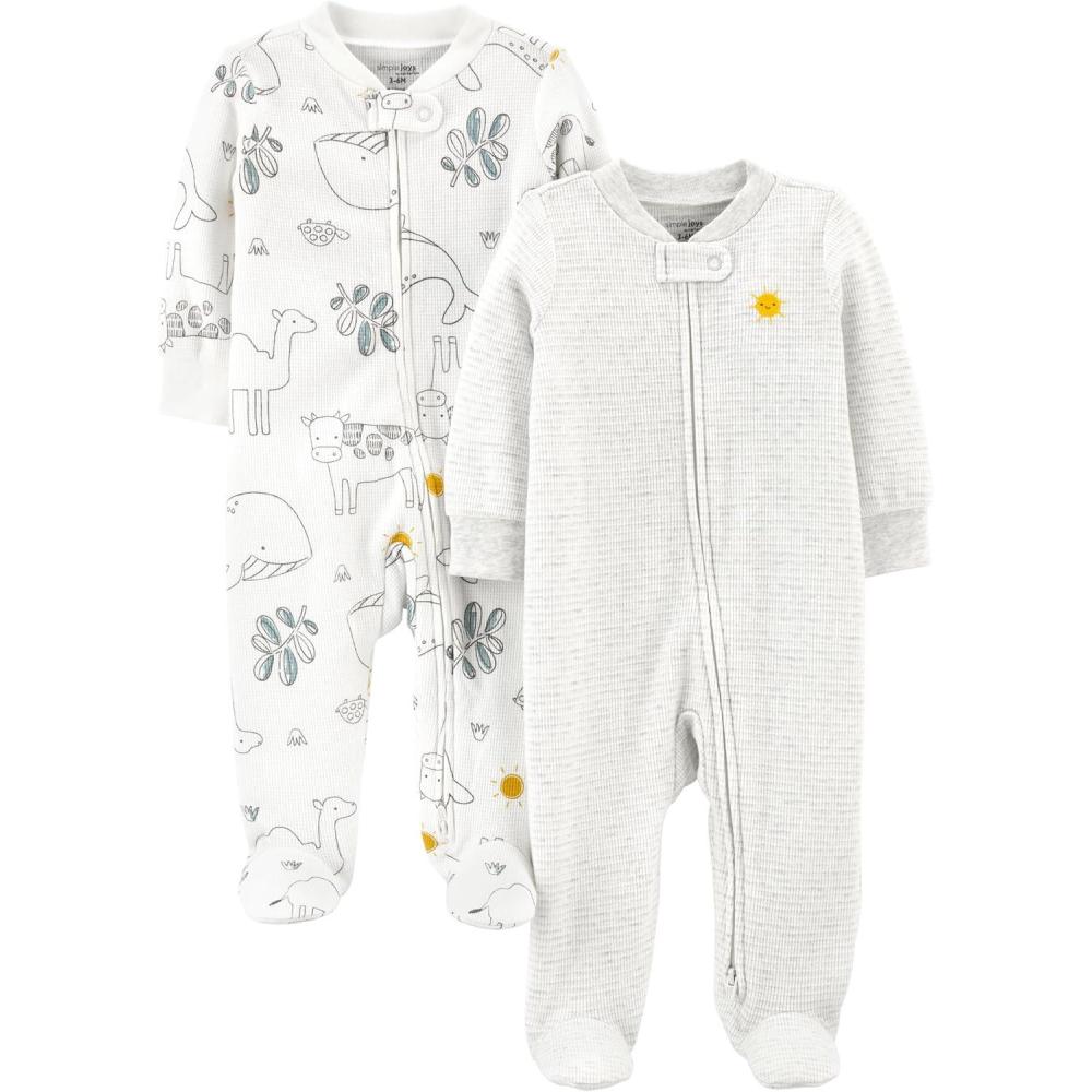 Simple Joys by Carter’s unisex-baby 2-way Zip Thermal Footed Sleep and Play, Pack of 2(Animal/Sun)