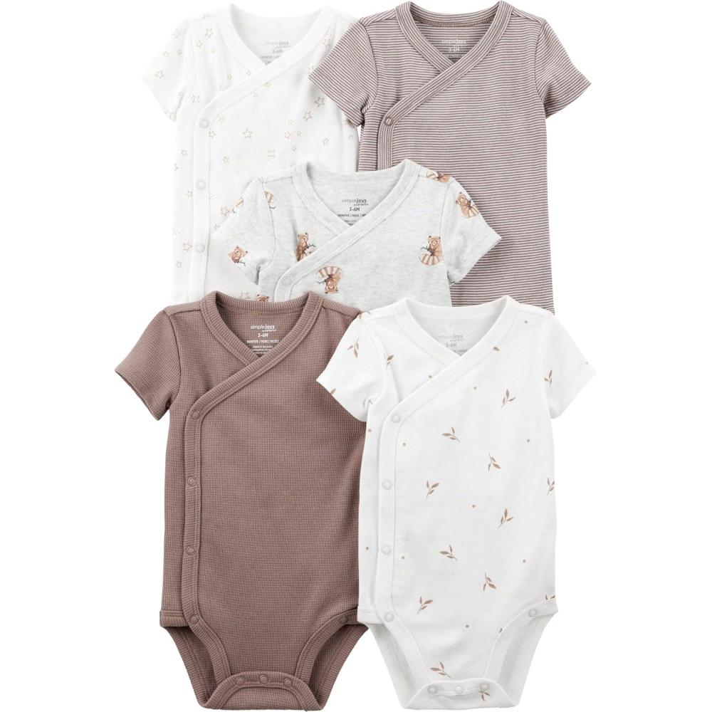 This unisex 5-Pack Short Sleeve Side Snap Bodysuit Set from Simple Joys by Carter’s offers the perfect blend of comfort, convenience, and value for parents. Designed with unisex styling, these bodysuits are ideal for both boys and girls, making them a versatile wardrobe essential. Each bodysuit features easy-to-use side snaps for quick and hassle-free dressing, minimizing disruption to baby’s routine. Crafted from soft, breathable fabric, these bodysuits provide all-day comfort for your little one. The set includes five bodysuits, offering great value while ensuring you always have a clean one on hand. Whether for everyday wear or as a layering piece, this set is a must-have for any baby’s wardrobe.